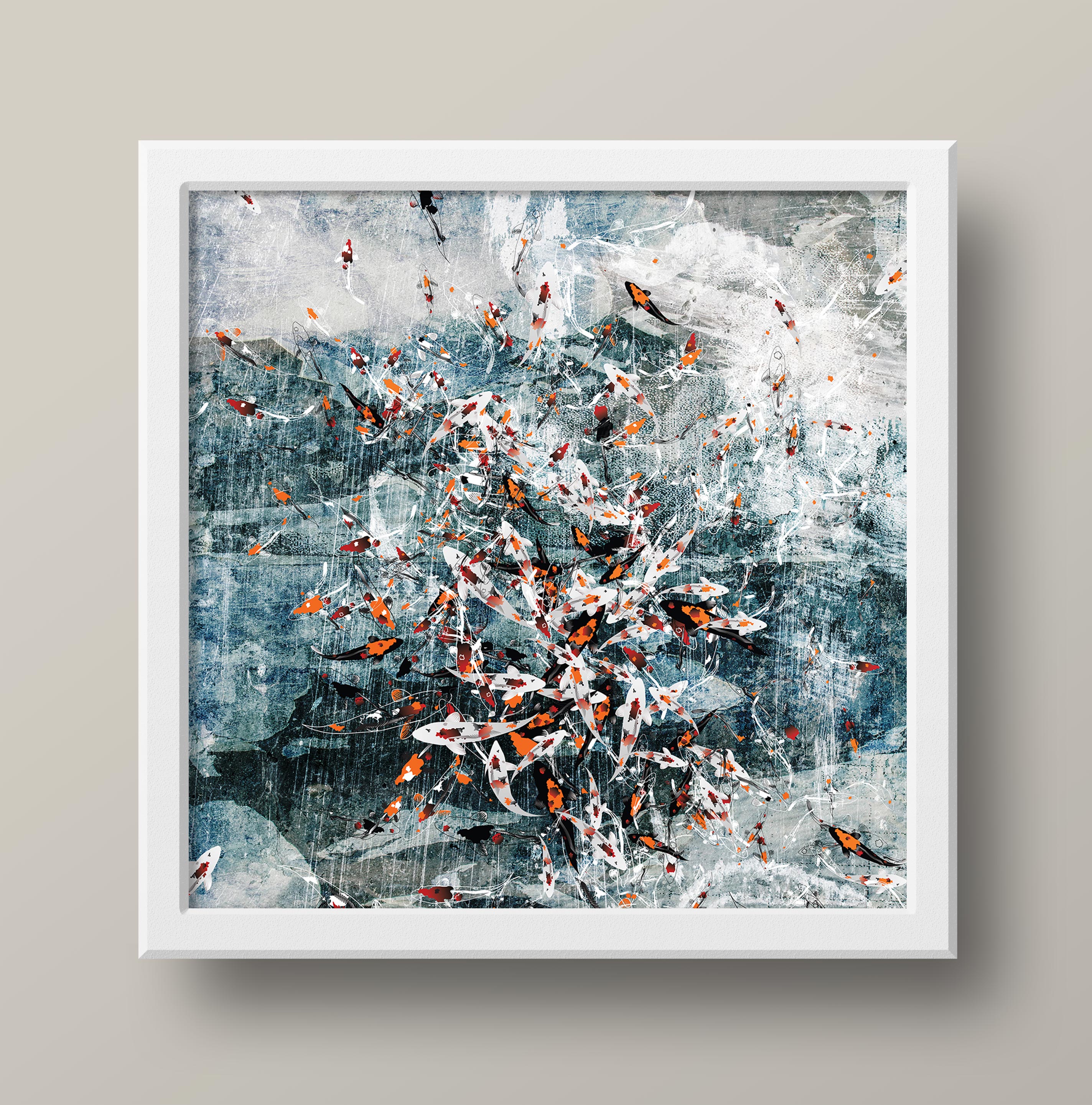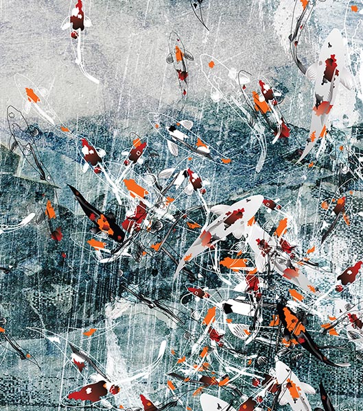 The Charm of Dissonance series explore the intricate movements of the koi fish. Outlines of the fish form, simplified Colors were experimented during the creative process. Handmade textures were digitalized, enhanced and integrated into the pieces.