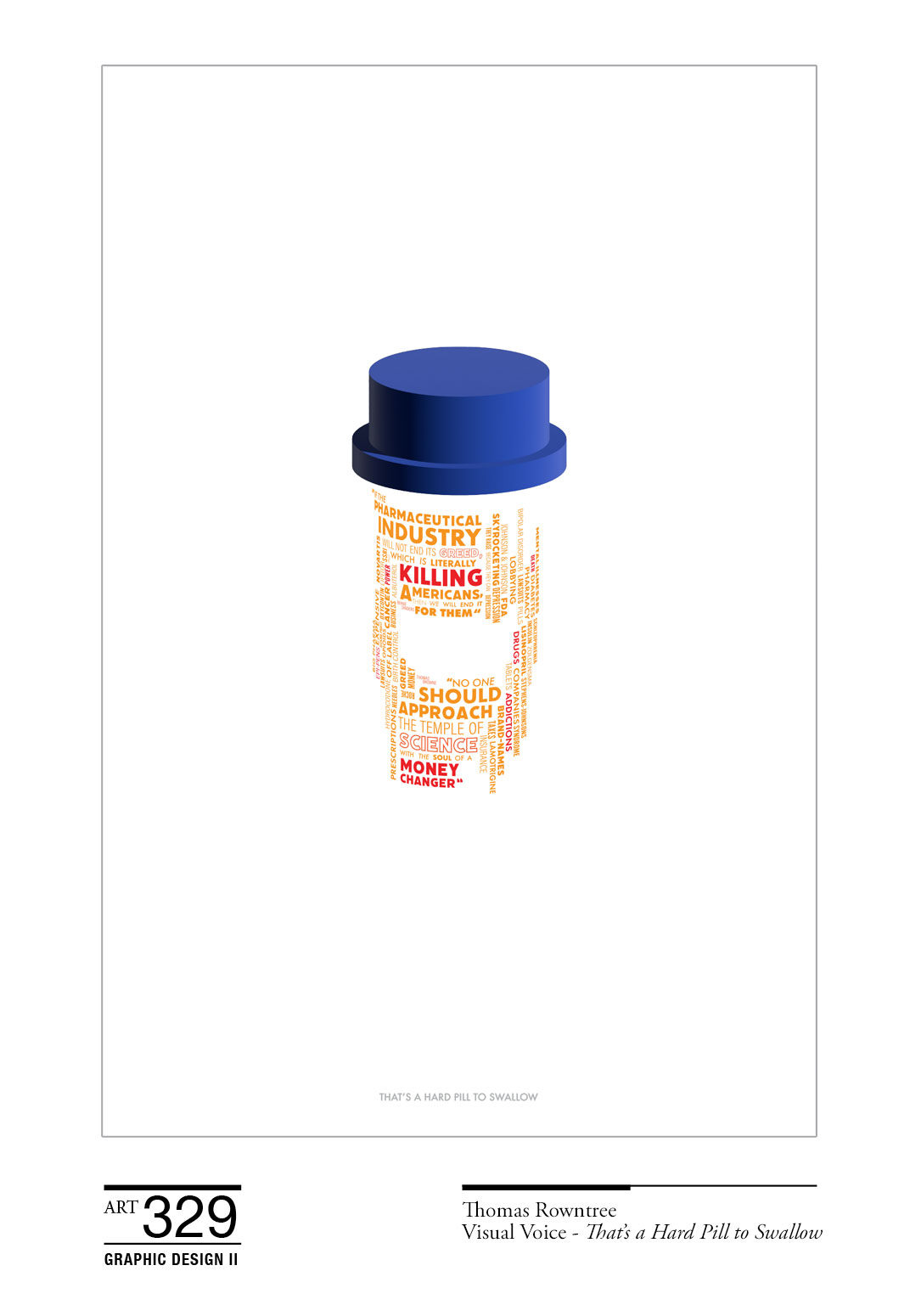 Graphic Design II is a required course for Digital Art & Media Design Concentration. And it’s a prerequisite course for most of the upper level Digital Art & Media Design courses. The course focuses on the topics of the contemporary graphic design techniques and practices. Students will continue the exploration of typographic design begun in Graphic Design I, as they begin to be concentrated on organizing two-dimensional space effectively, thinking conceptually, and combining images with typography.