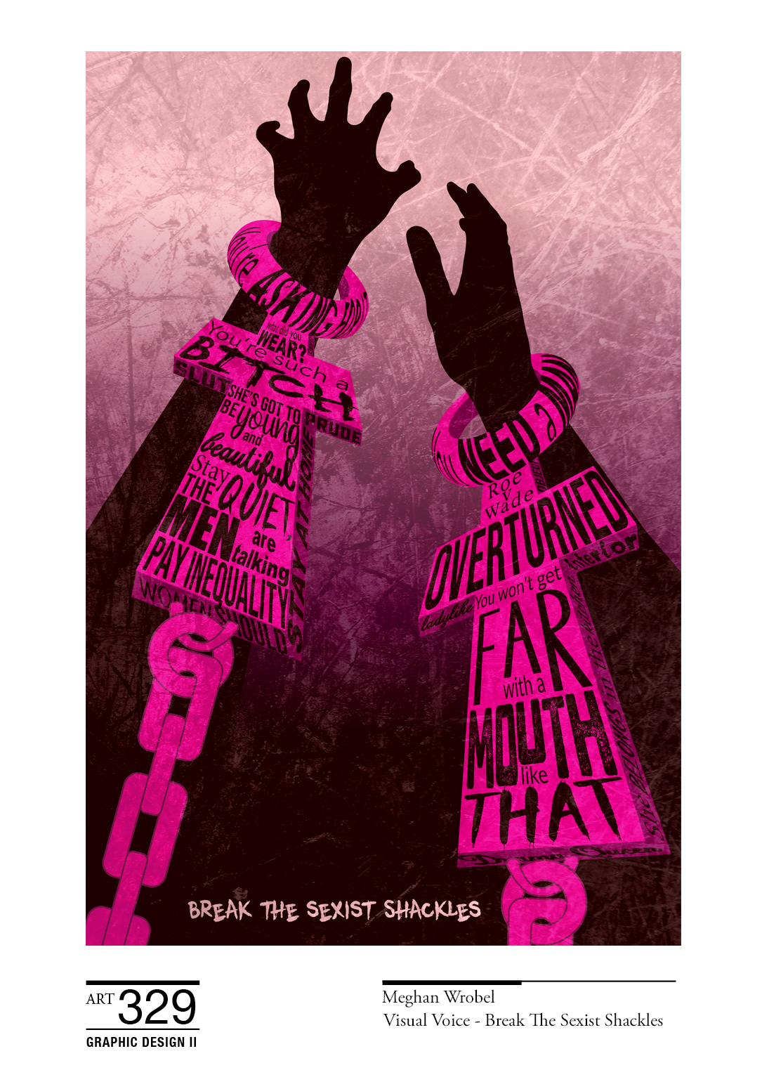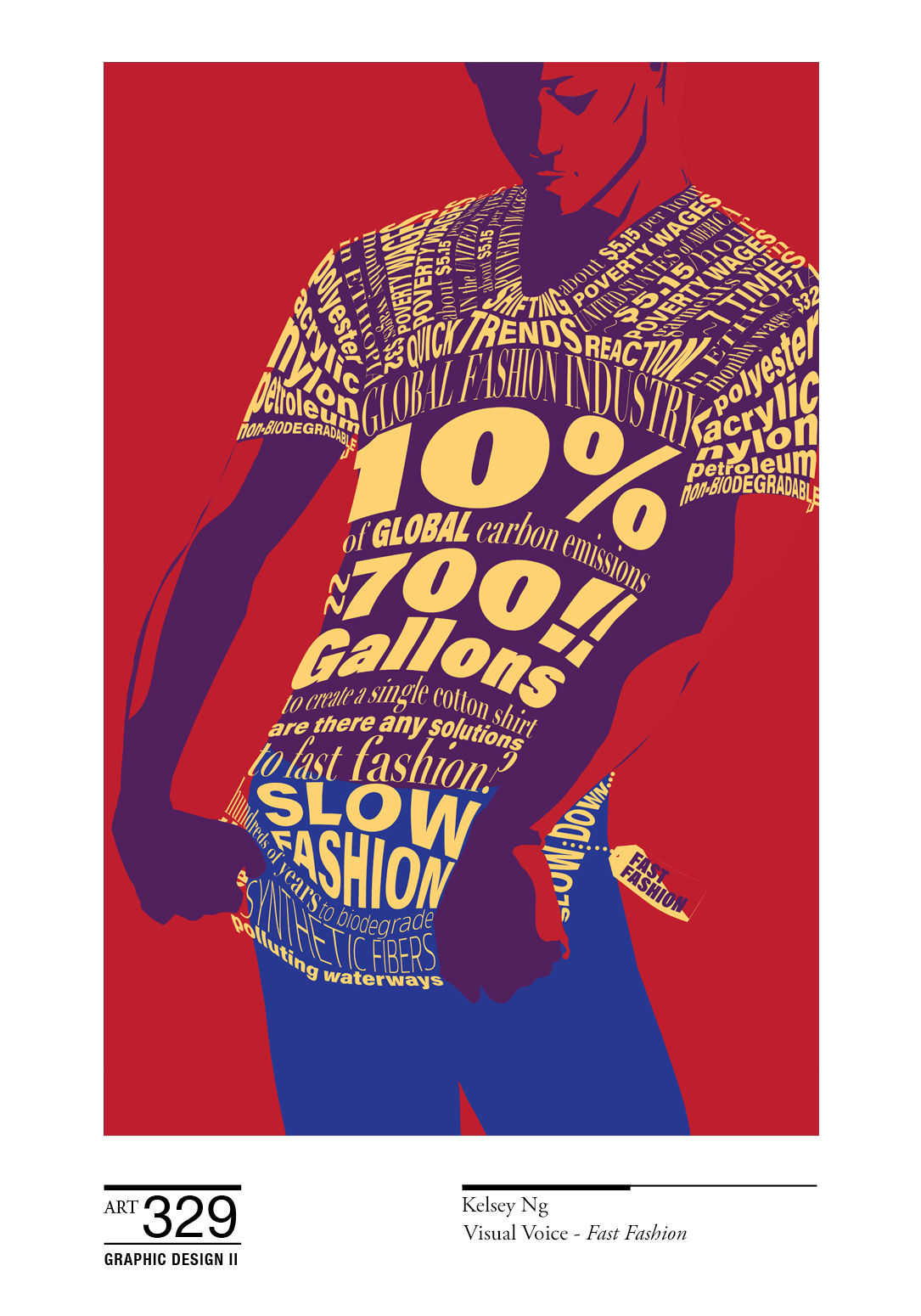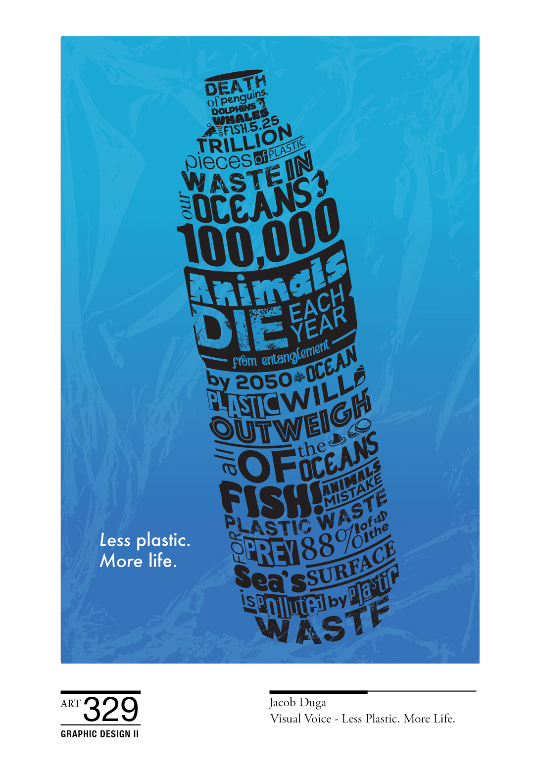 in Visual Voice emphasized exploring the connection that graphic design, as a strong means of visual communication, can make between designers and their viewers. The students were asked to design a poster that focused on the cultural, environmental, political or social issues. They could choose topics such as Climate Change, Human Rights, Wild Animal Protection and etc. Through research and creative design process, the students expressed their feelings and ideas, and brought the public awareness and attention to the cultural, environmental and social issues they found in the world around us.