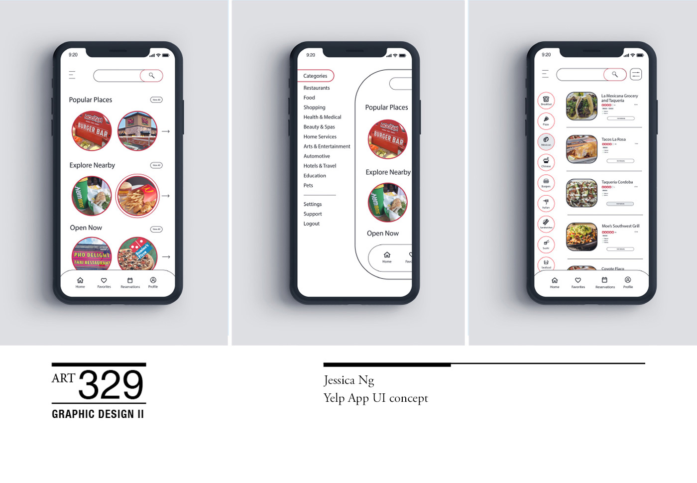 In this project students develop a user interface concept for their chosen mobile app. Through their own unique perspectives, the students explored various design solutions that can provide a whole new look and feel to the app. The emphasis was to develop effective visual hierarchy and consistency which can help the user experience become more attractive and compelling. Paying attention to the details, such as the design choice of icons and buttons, is another focus that students persued during this project.